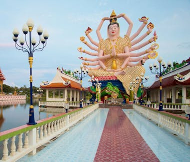 One of the most recognizable landmarks on Koh Samui; a 12‑m golden seated Buddha statue set on a small island connected by causeway. Great for sunrise/sunset views.